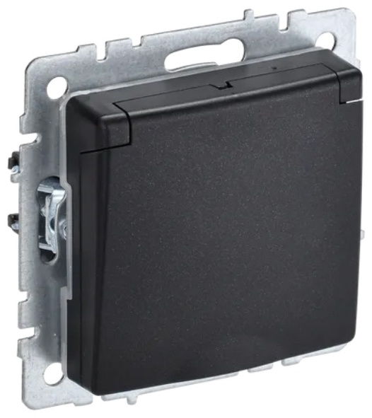 Розетка BRITE с с/з, з/ш и крышкой 16А IP20 черная BR-R16-16-K02