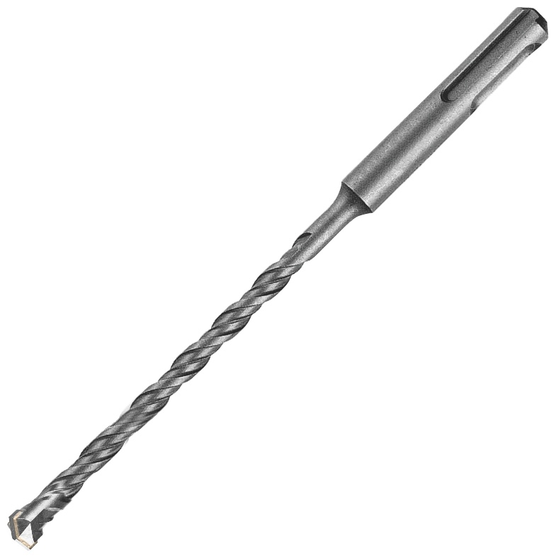 Бур по бетону используется для работы с прочными основаниями. Оснащён двумя резцами из твёрдого сплава, что обеспечивает долговечность и надёжность. Стальная основа повышает прочность инструмента, а хвостовик SDS-Plus делает крепление удобным и стабильным. Такой вариант подойдёт для ремонтных и строительных работ.