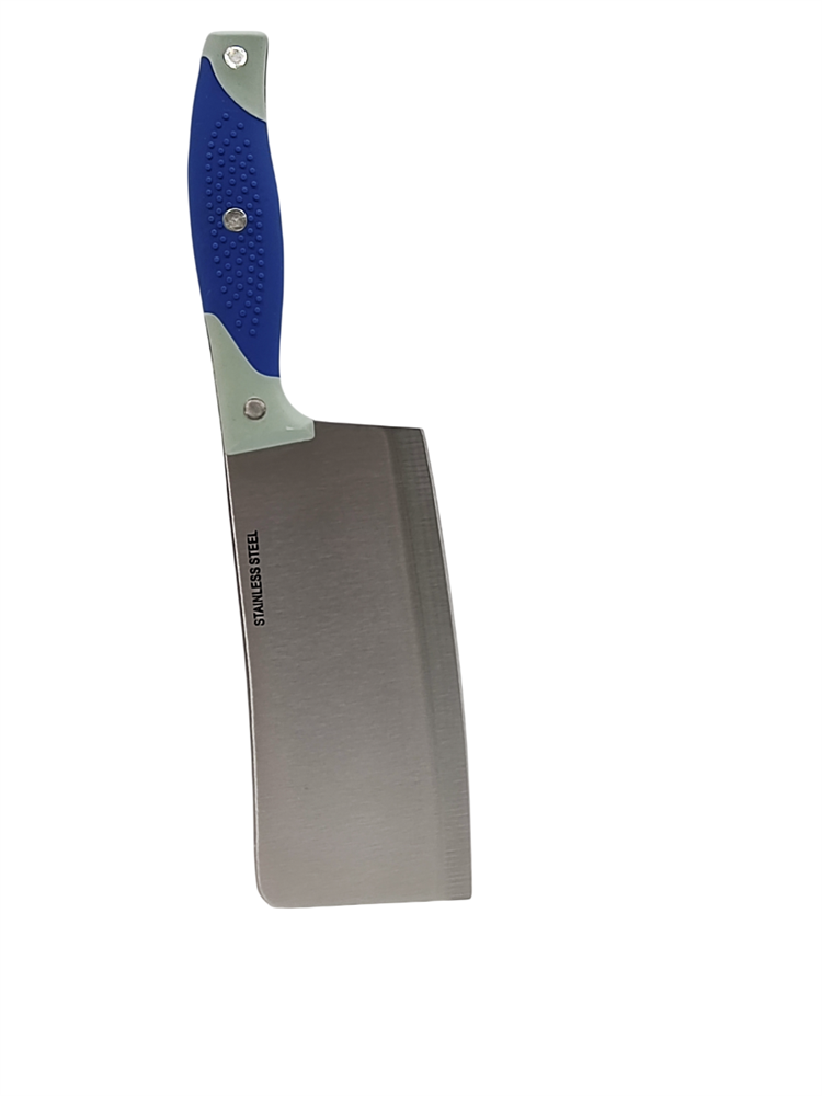 Нож QIAN SHUENN кухонный широкий для рубки мяса, нерж. сталь,сине-серая резиновая ручка 151108