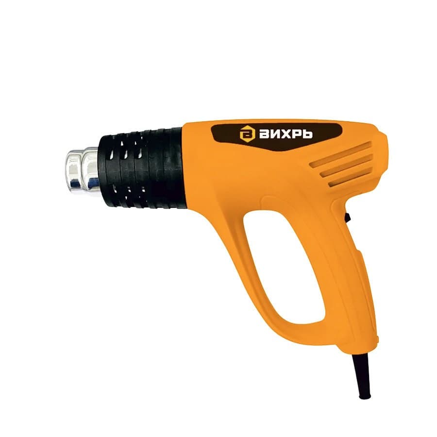 Термопистолет (фен промышленный) ВИХРЬ ТП-2000 – ручной электроинструмент для обработки горячим воздухом поверхностей и материалов, для удаления красок, формования и сварки пластмассы, нагревания термоусадочных труб; инструмент также подходит для пайки и лужения, размягчения клеевых соединений (швов), а также размораживания водопроводных труб. Термопистолет предназначен для эксплуатации при температуре окружающей среды от -10°С до +40°С, относительной влажности воздуха не более 80% и отсутствии прямого воздействия атмосферных осадков и чрезмерной запылённости воздуха.