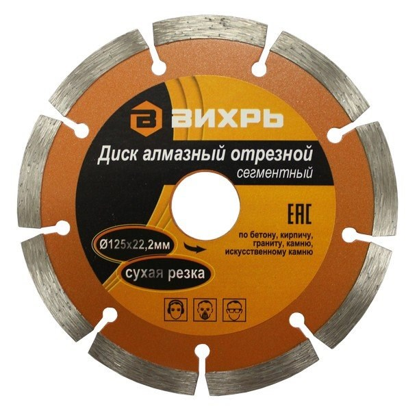 Диск ВИХРЬ алмазный отрезной сегментный 125х22,2 мм,сухая резка 73/10/3/2
