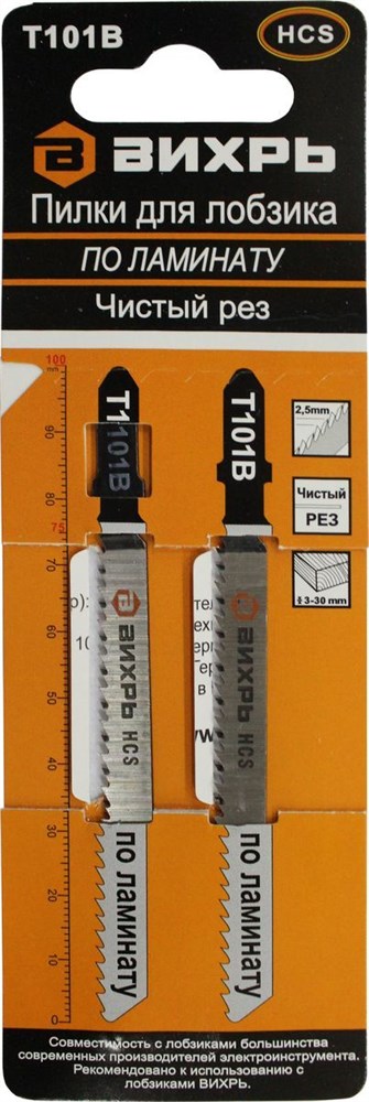 Пилки ВИХРЬ для лобзика Т101В по ламинату,чистый рез 100х75мм (2 шт) 73/10/5/1