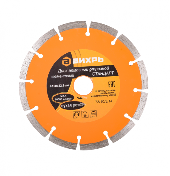 Диск ВИХРЬ Стандарт алмазный отрезной сегментный 150*22,2мм, сухая резка 73/10/3/14