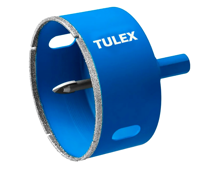 Коронка TULEX алмазная по стеклу и керамической плитке, центр.сверло, трехгранный хвостовик 115 мм