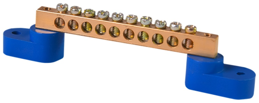 Шина SIRIUS 0 N 8*12мм, 18 отверстия, латунь, 2 синих угловых изолятора
