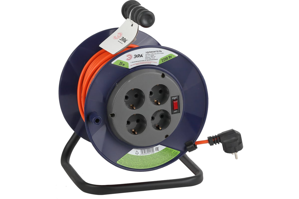 Удлинитель силовой ЭРА RPx-4es-3х1.0-20м с заземлением, 4 розетки, 20м ПВС 3х1мм2 Б0043054