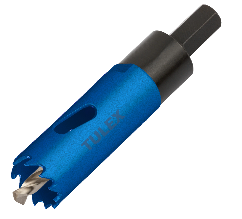 Коронка TULEX биметаллическая, шестигранный хвостовик,с центрирующим сверлом,в сборе 22мм 601013-022