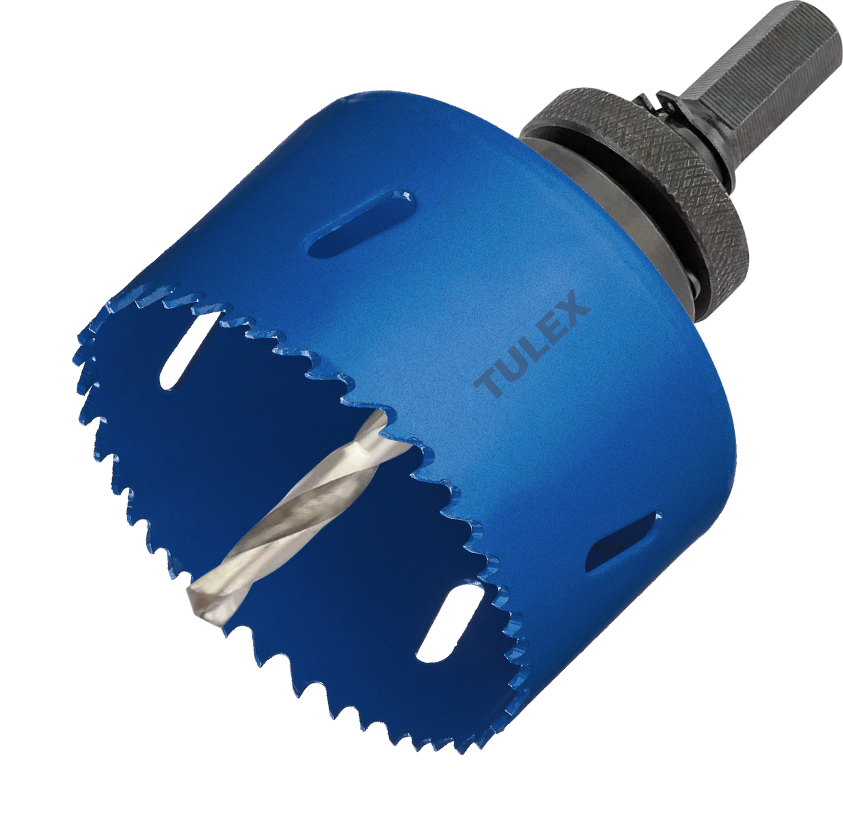 Коронка TULEX биметаллическая, шестигранный хвостовик,с центрирующим сверлом,в сборе 83мм 601013-083