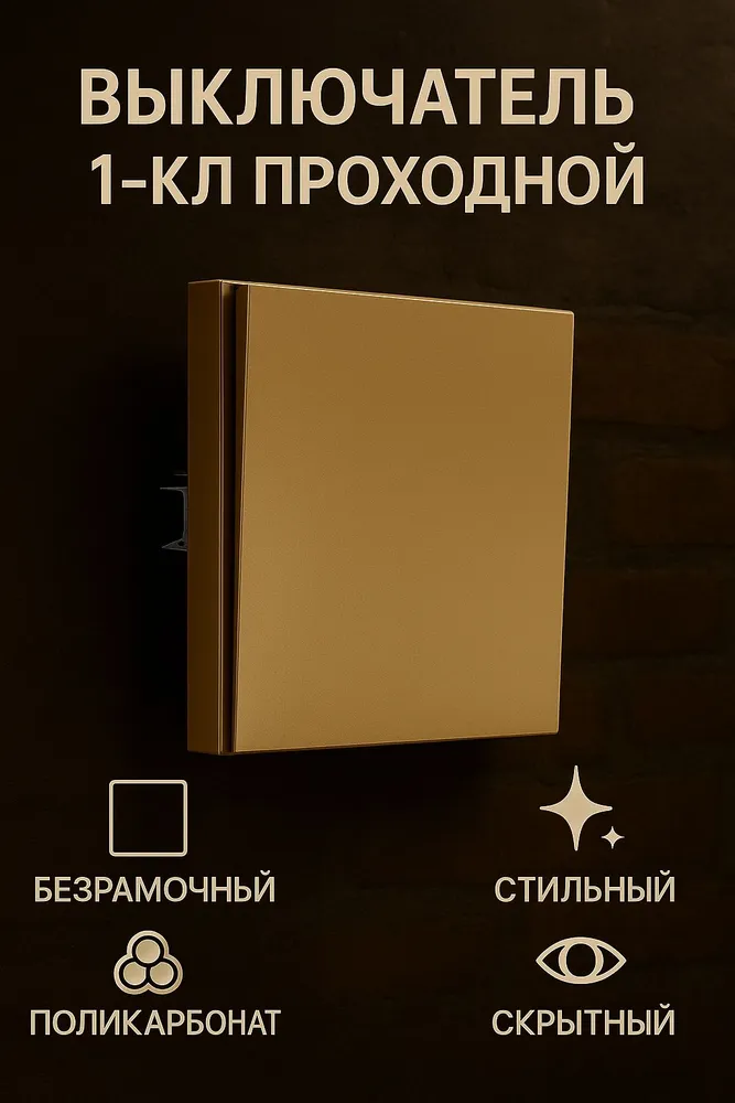 Выключатель NEXON 1-кл, проходной, цвет матовое золото 80-B3-EK12KZ